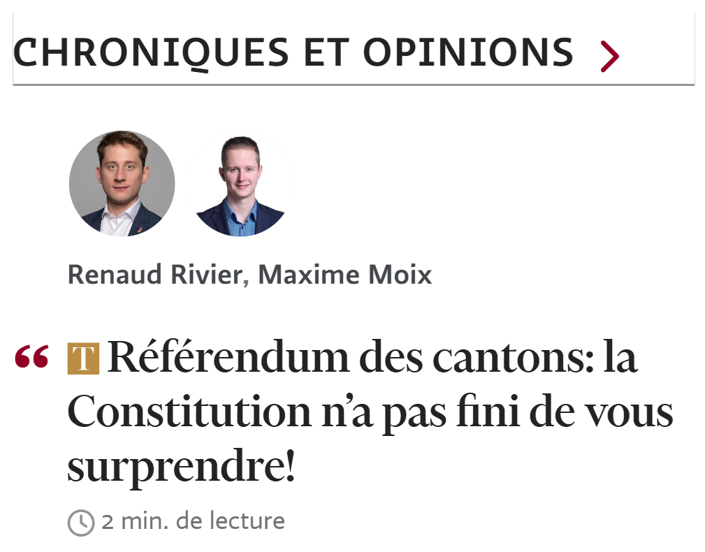 29 septembre 2025 – Dix cantons ont actionné la semaine dernière un levier institutionnel presque oublié: le référendum des cantons. Retrouvez mon opinion publiée dans le Temps, écrite avec Renaud Rivier, membre du comité du Centre Vaud.